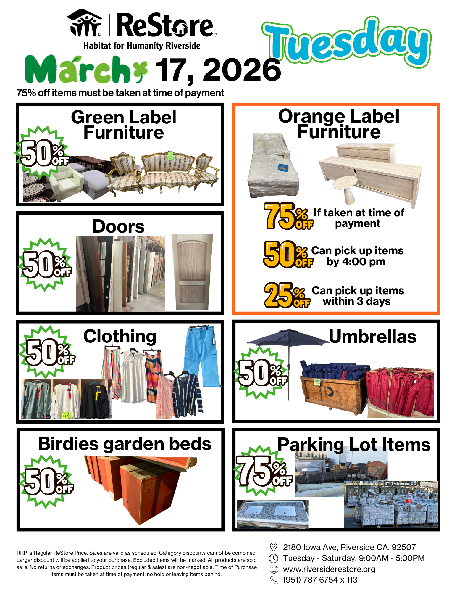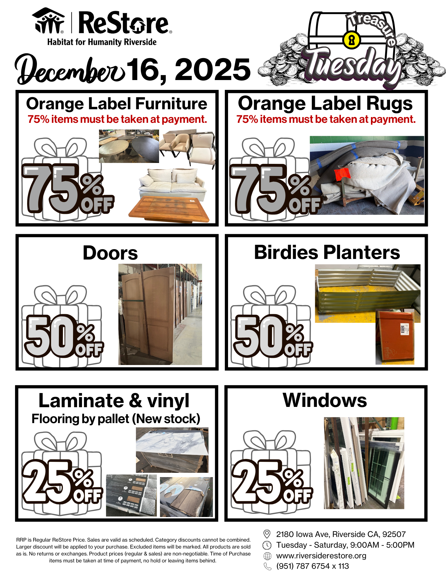 *University and college students, take an additional 10% off your total ReStore purchase on Tuesdays!